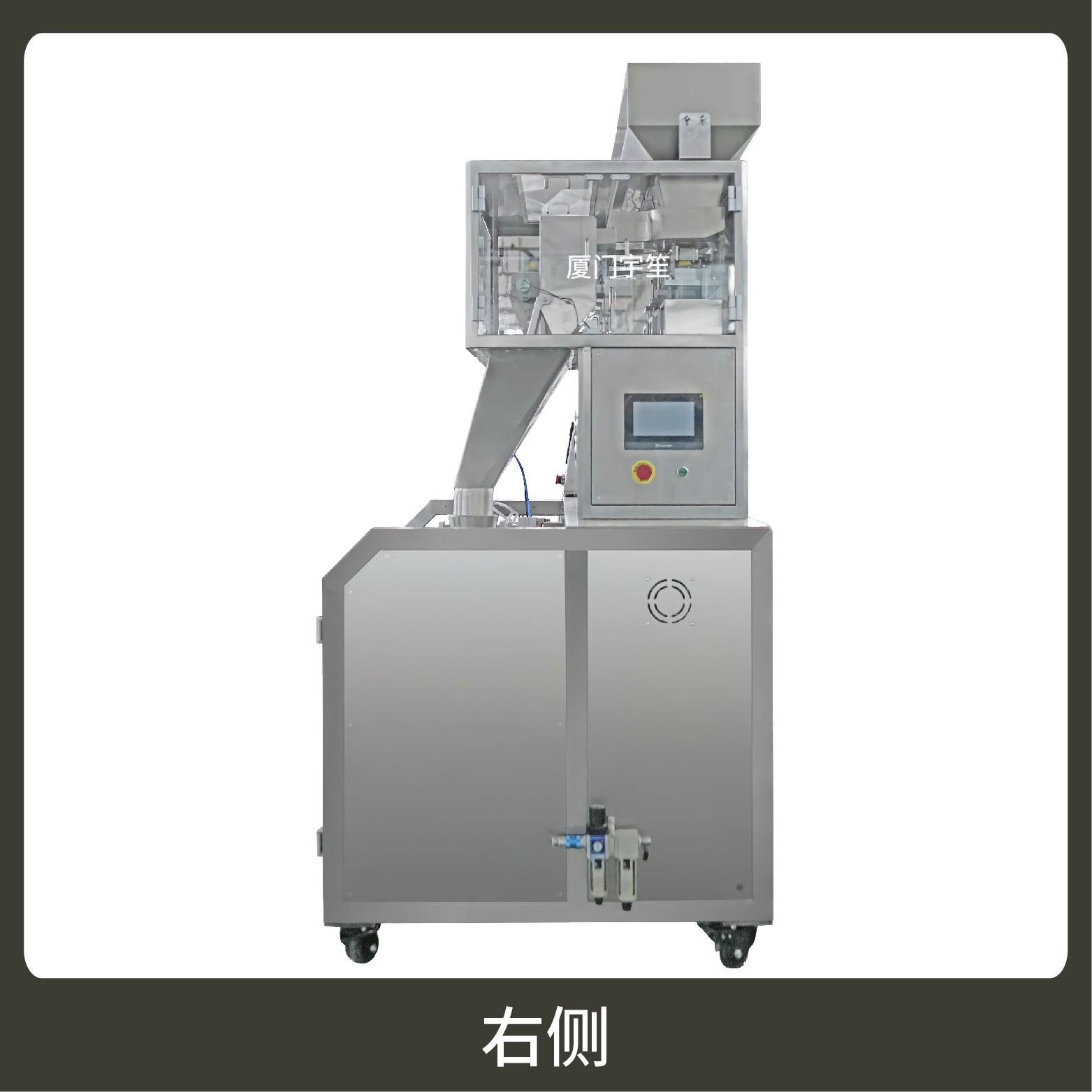 2、用于自封袋、站立袋、拉鏈袋,可抽真空、充氮氣。包裝流程全自動,無需人工操作??筛鶕?jù)充填物料的性質(zhì)選配不同的下料結構,且可根據(jù)客戶要求配置打印批號等功能。
