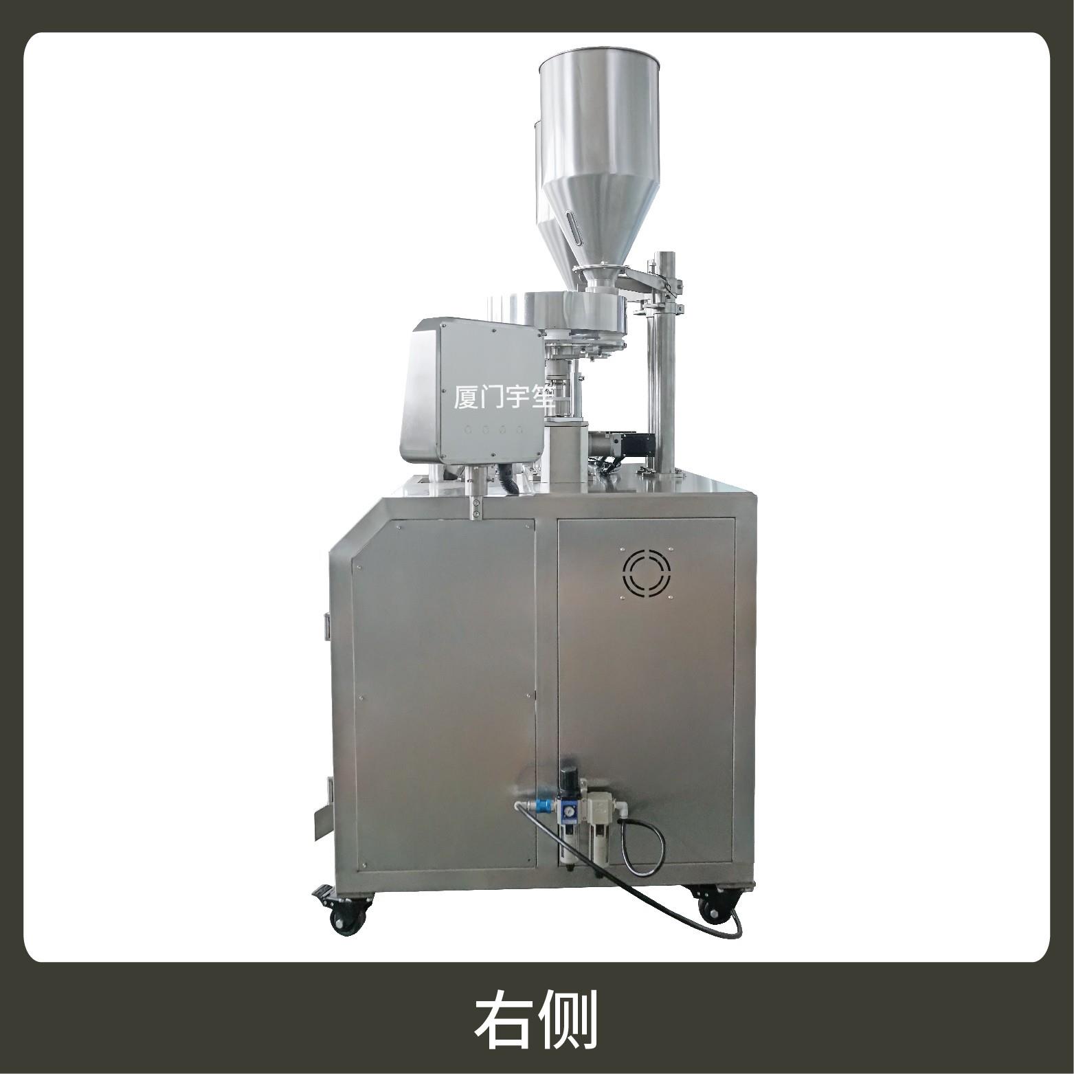 2、成品雙出,速度快,包裝流程全自動,無需人工操作??筛鶕?jù)充填物料的性質選配不同的下料結構。